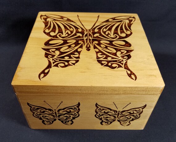 Boite Cadeau Tribale Brulee Faite A La Main De Papillon Boite Etsy